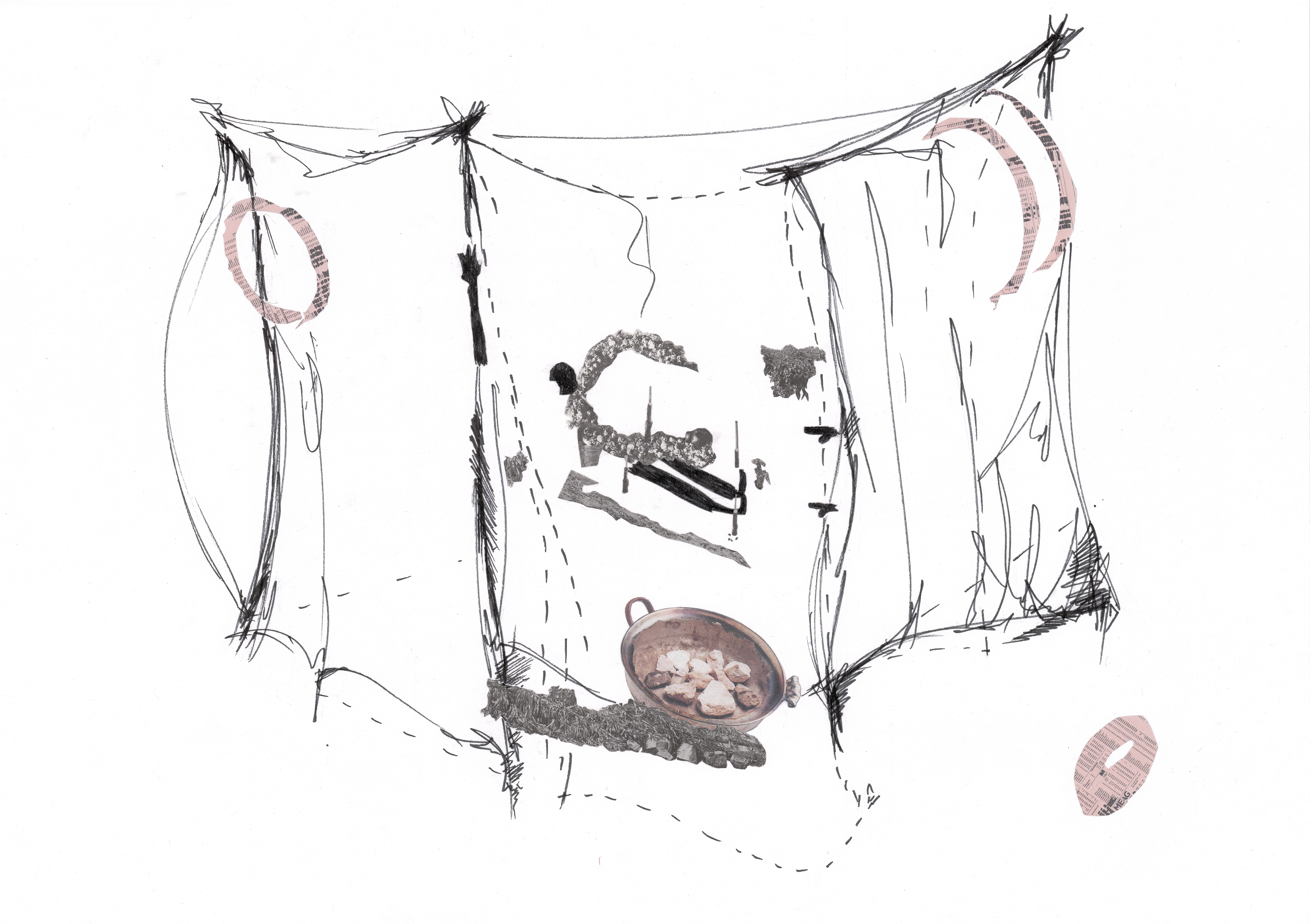 The construction of the Tukolor loom-shrine used by mabube weavers in Senegal’s Fuuta Toro region, can be taken as a further example (and point of escalation). Planted in a choreographed ritual detailed in Roy Dilley’s “Myth and Meaning and the Tukolor Loom” paper, the loom is built from the ground up: