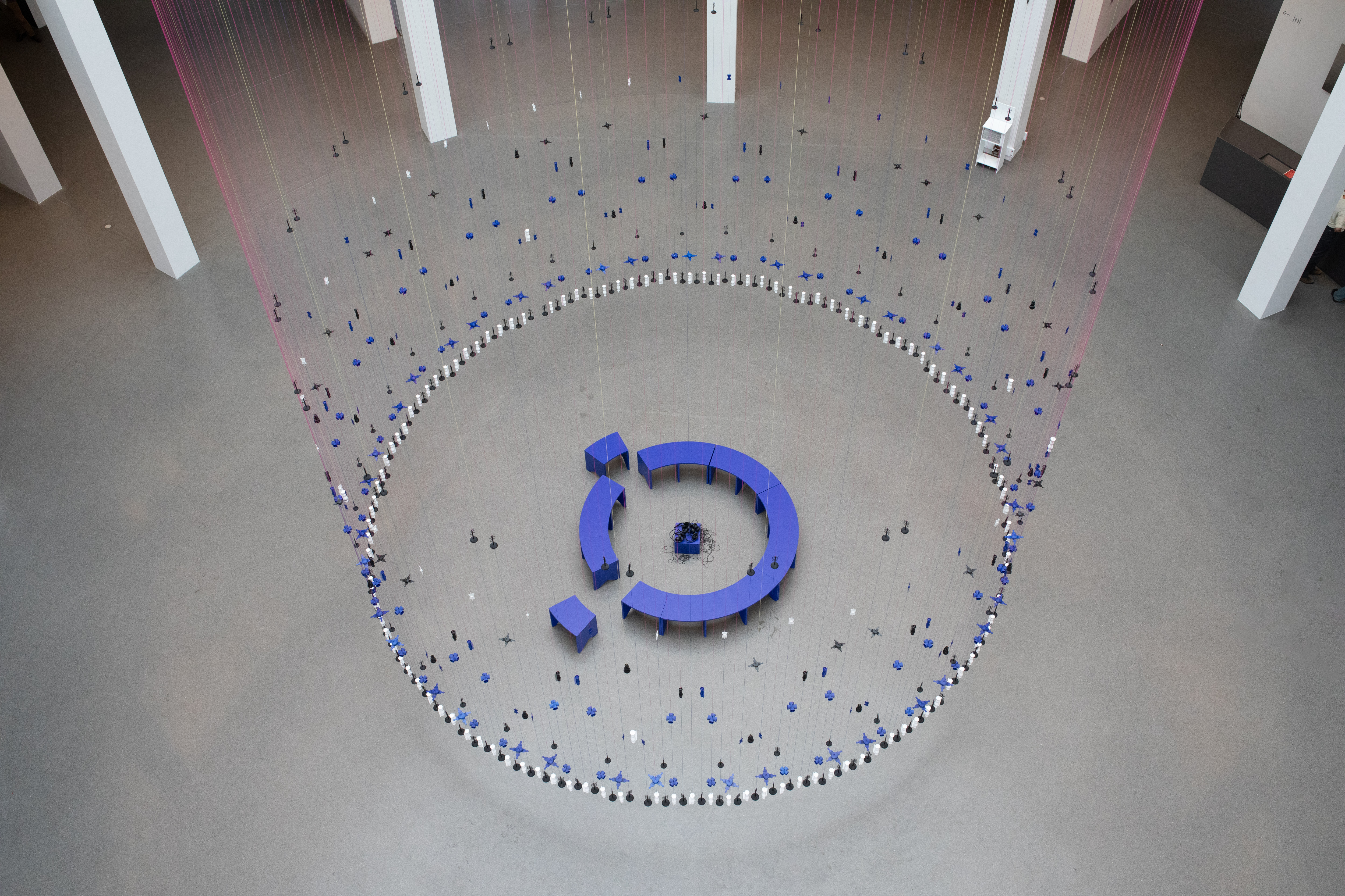 The abstraction of the objects that make the curtain really stand out. First of all, it’s just absolutely beautiful. But further than that, to me, it really encapsulates this notion that homeplace — and what makes it — is not fixed in form, but non-linear and fluid. Can you guys talk to me about that choice to abstract?