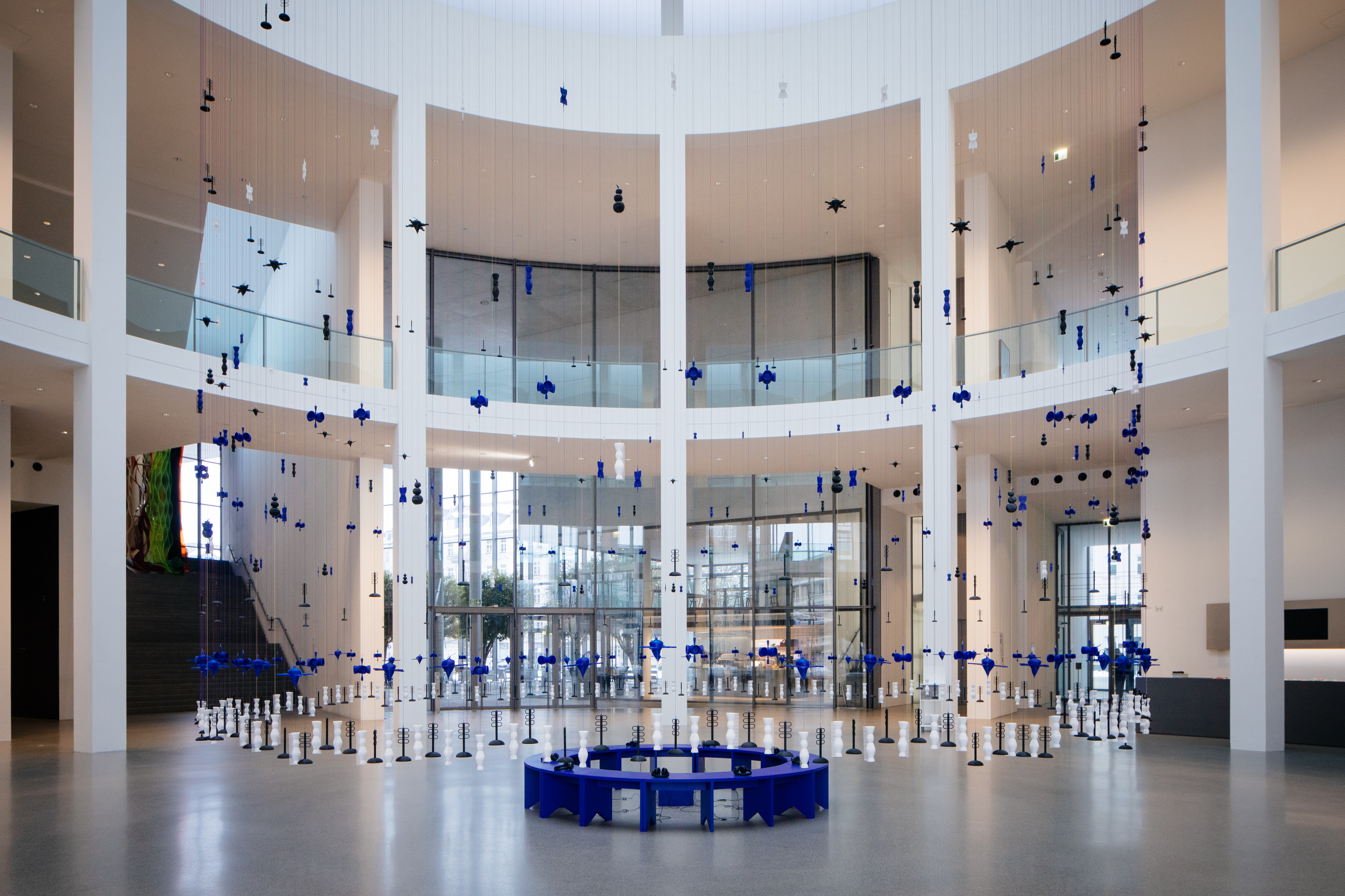 In the public Rotunda of the Pinakothek der Moderne, spatial research association Matri-Archi(tecture) installed Homeplace – A Love Letter in December 2023. An installation of ceiling-to-floor coloured threads forming a perfect circle, curved blue benches invoking an imbizo (Zulu for “gathering”), and a specially commissioned soundscape by Kenyan sound artist Kalemela, the 15-week exhibition reflected on homeplace and the spatiality of dwelling. Fluid, intimate, deeply personal yet resolutely communal, the work by Abdé Batchati, Afaina de Jong, Aisha Mugo, Khensani Jurczok-de Klerk, and Margarida N. Waco centred Afrodiasporic experiences to imagine home otherwise. For Okra Issue 1, the quintet sat with Angel Harvey-Ideozu to speak about bell hooks, desire as a prompt, navigating institutions, the role of the exhibition newspaper, and African timing.
