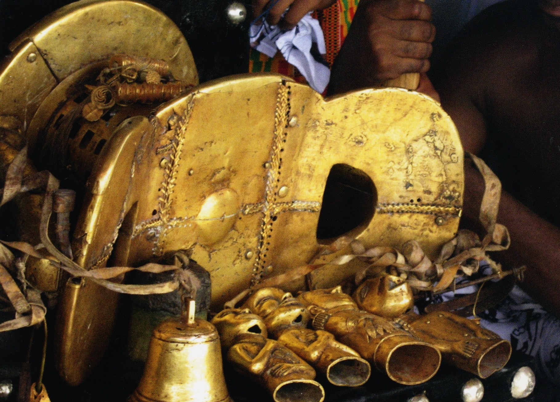 I held this information loosely growing up, but it was as a teenager when I arrived at the The Manhyia Palace in Kumasi, bored and hot, that the significance of gold as part of my family’s DNA really dawned on me. Here, the Asantehene sat on a gilded throne surrounded by an array of intricate gold objects. When I eventually used the bathroom during a break from watching the court jester, I was met with taps that appeared to be crafted from solid gold. In that moment, gold stopped seeming like a display of opulence and became, in my adolescent mind, a signifier of Ghanian culture and a declaration of pride.